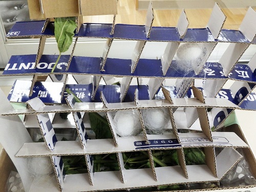 繭(まゆ)を作り始めてから一週間ほどが経ちましたので、繭を一つ一つ蔟(まぶし)から外します。