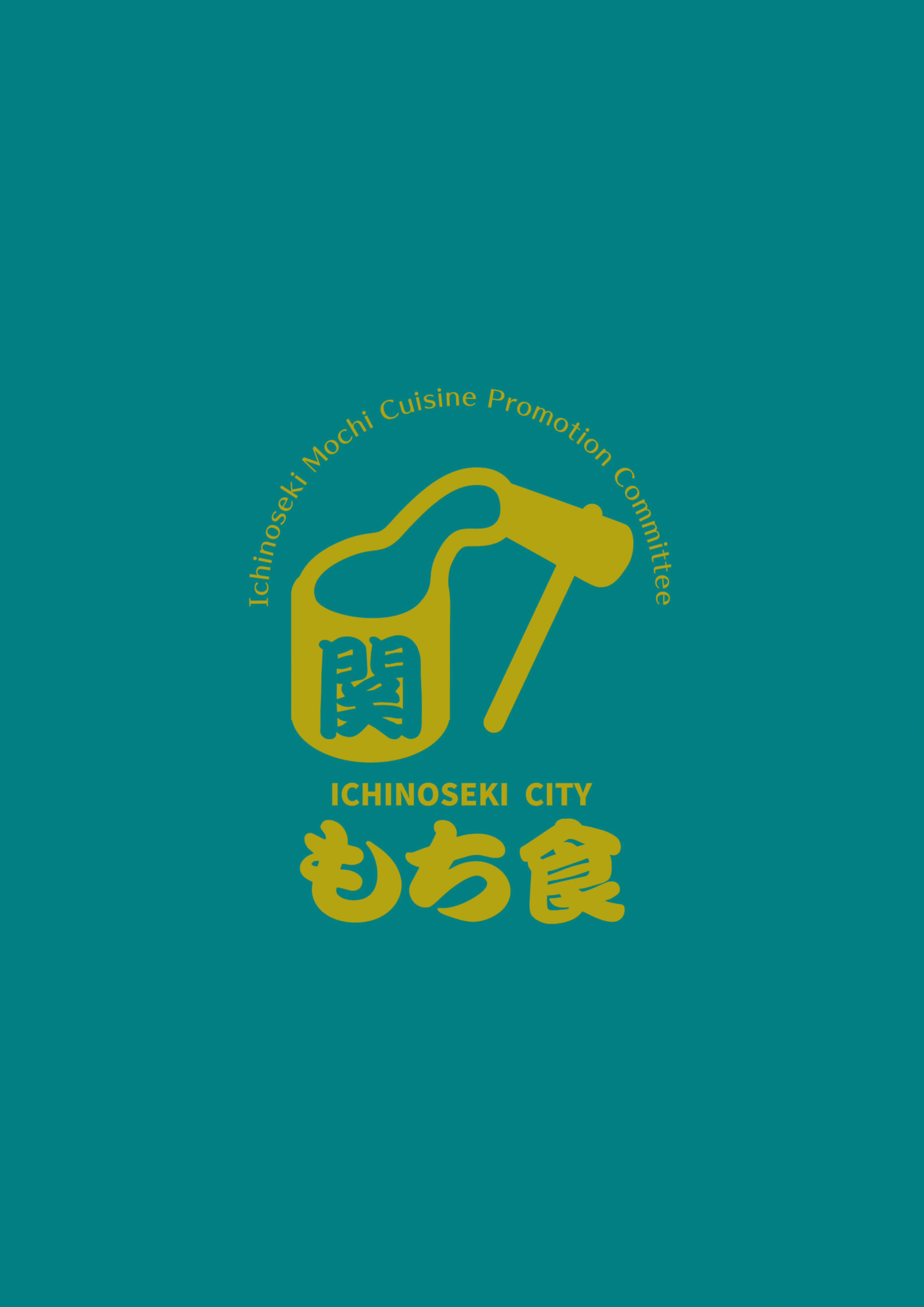 図案では、「餅」を「杵」と「臼」で表現し、同時に「一関」の「一」を伸びきった「餅」で表す。