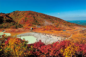 標高1,627.4mの栗駒山(一関では「須川岳」とも呼ばれています)の中腹、1,126m(イイフロのゴロ合わせになっています)にあります。江戸時代からみちのくの湯治場として親しまれており、毎分6,000ℓも湧出する湯量たっぷりの温泉です。内風呂、天然蒸風呂、足湯、様々な温泉もありますが、雄大な自然の中の大露天風呂は、須川温泉の名物。夜空に近い位置で天空に広がる星を眺めながらの入浴は最高です。登山の疲れとるのにも最適☆