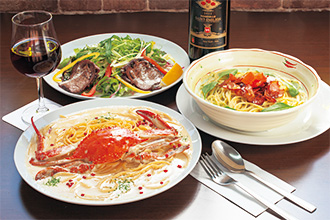 東山町にある日本百景猊鼻渓近くのイタリアン。Barilla(バリラ)1.7mmのパスタと地産地消にこだわった季節感たっぷりのお料理が魅力。中でもおすすめなのは、ボリューム満点な渡りガニのホワイトクリームスパゲティ。見た目も豪華で迫力あります。アットホームな空間でくつろぎながらお食事できます。