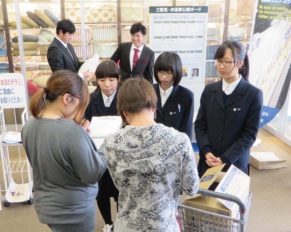 県立一関第一高等学校の生徒有志(10名)は3月28日、イオンスーパーセンター一関店で、ILCの誘致実現に向けた署名活動を実施しました。