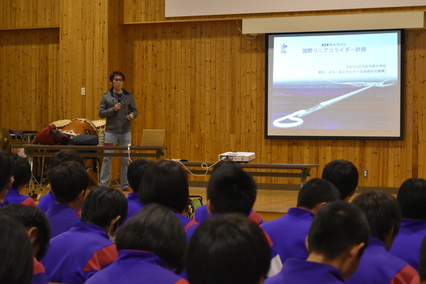 12月5日・6日、舞川中学校、千厩中学校、興田中学校、藤沢中学校で中学生ILC特別授業を開催。