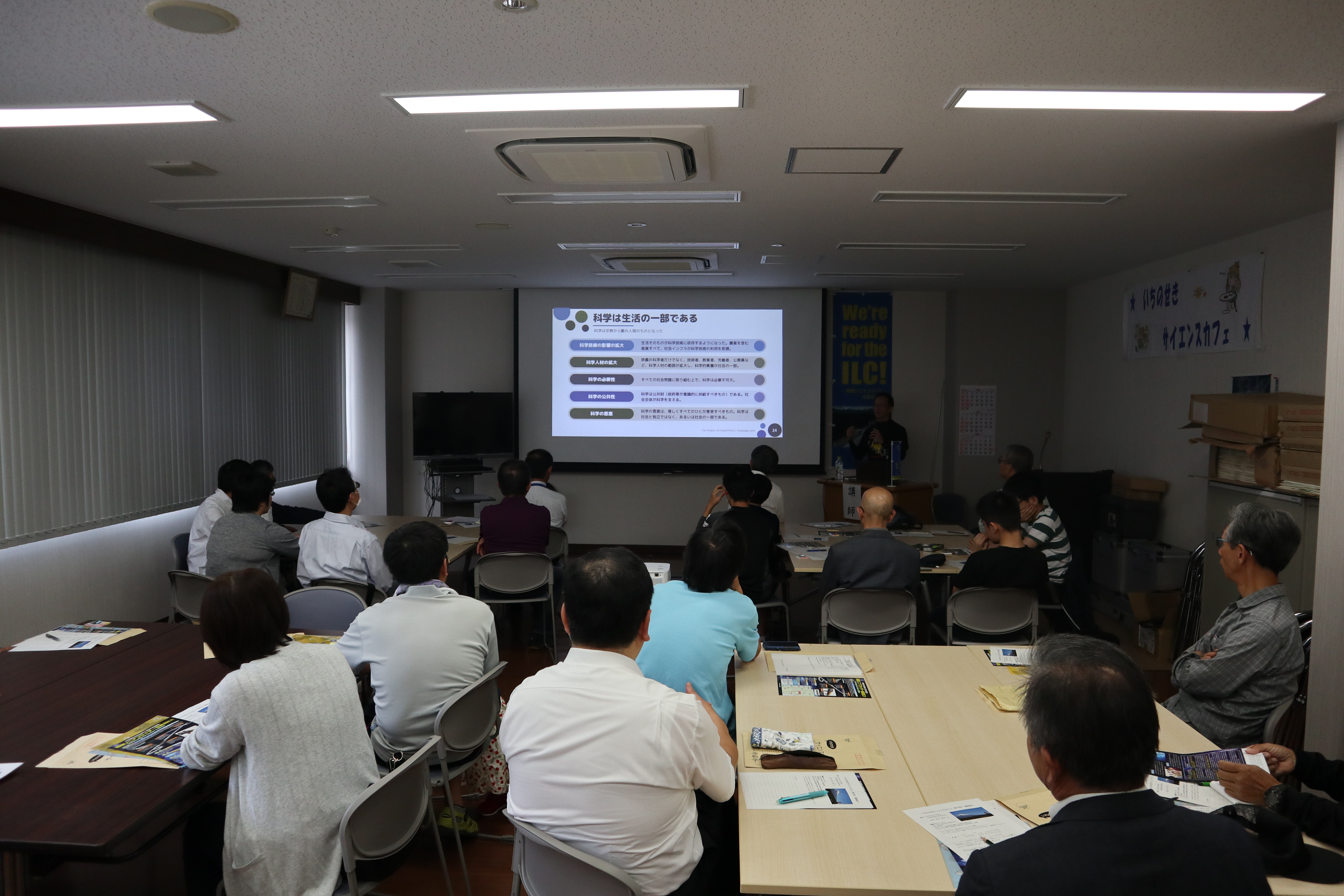「いちのせきサイエンスカフェ(3回目)」を9月21日、大東図書館を会場に開催しました。広島大学大学院の栗木雅夫教授を講師に迎え、「「ILCでおこる本当のビッグバン ‐科学、社会、経済‐」をテーマに講演いただきました。その後、ILCについて日頃から聞きたいことなどを中心に参加者と意見交換を行いました。