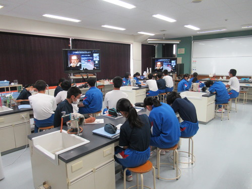 市では、市内の中学校を対象とした「ILC特別授業」を実施しています。7月16日には、厳美中学校において、高エネルギー加速器研究機構(KEK)素粒子原子核研究所の藤本順平氏を講師に、オンラインによる授業を実施しました。