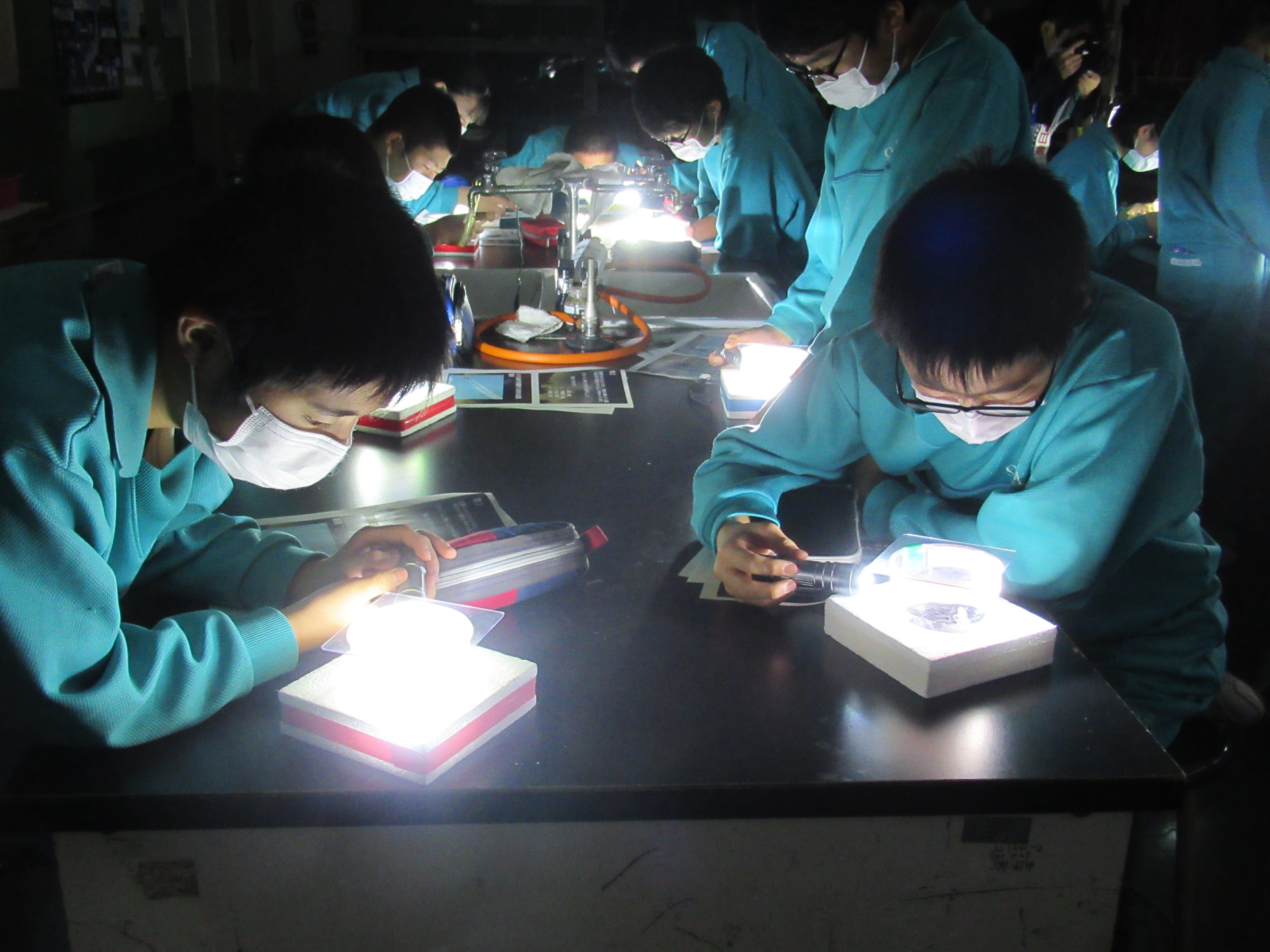 授業では、普段は見えない粒子の飛跡を観察する霧箱実験や素粒子の基礎、ILC実験の目的などについて学びました。