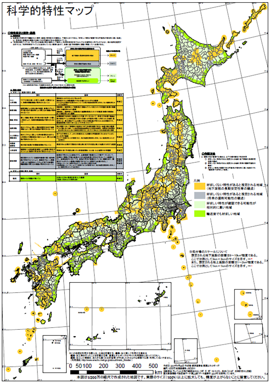 高レベル放射性廃棄物の最終処分を推進するため、経済産業省では、地域の地下環境等の科学的特性を全国地図の形で「科学的特性マップ」として提示しました。