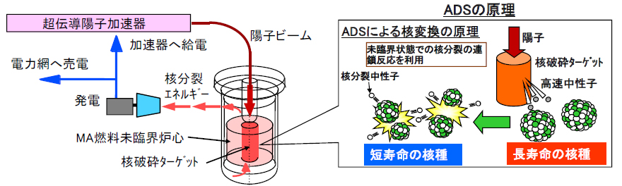 原子力発電所から出る使用済核燃料の半減期が長い放射性核種を半減期が短い又は非放射性核種に変換するADS(ADS:Accelerator-Driven System:加速器駆動システム)技術に関する基礎研究が、世界の様々な国で行われています。