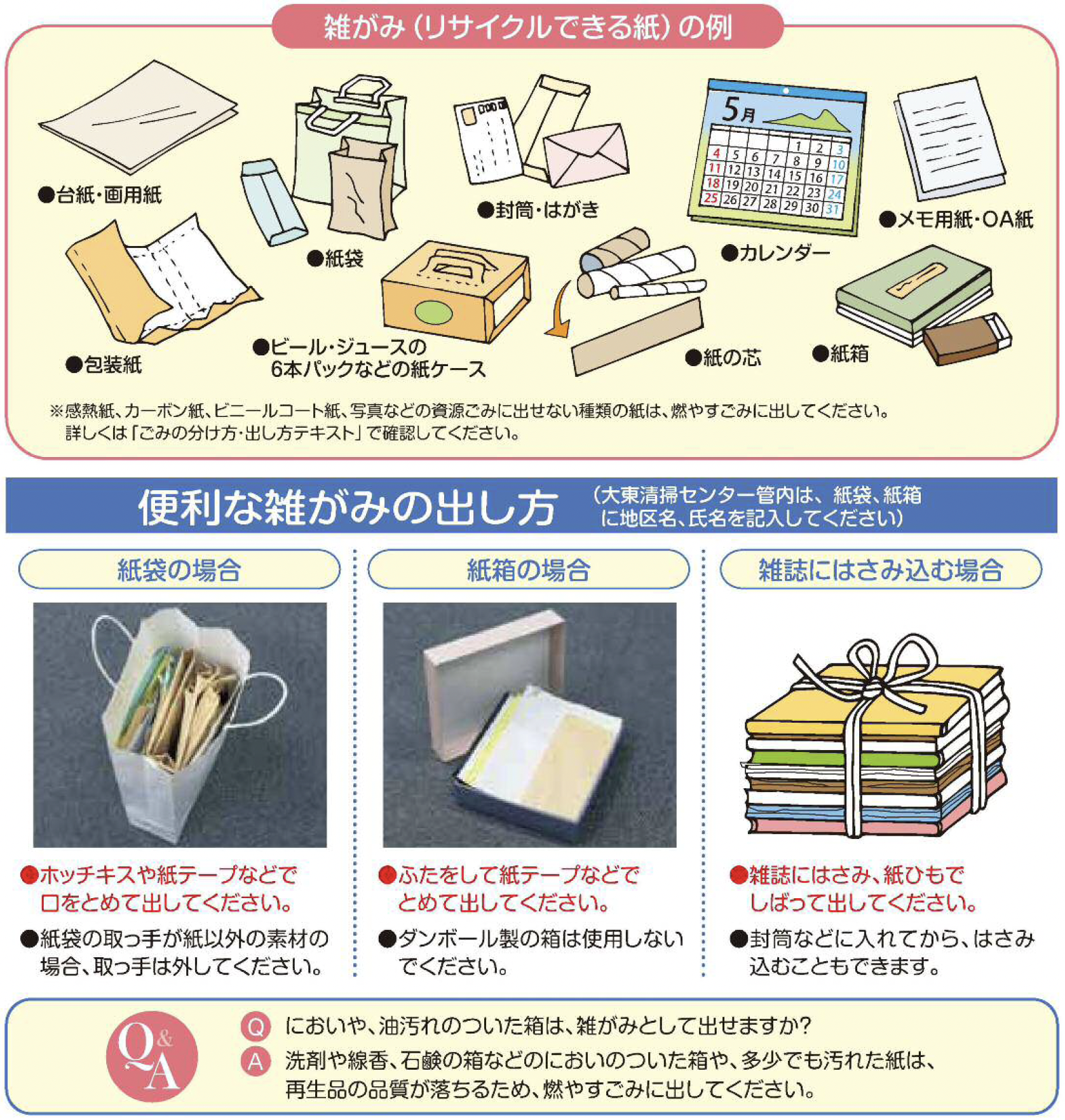 - 小さい紙は「雑がみ」として出してください。