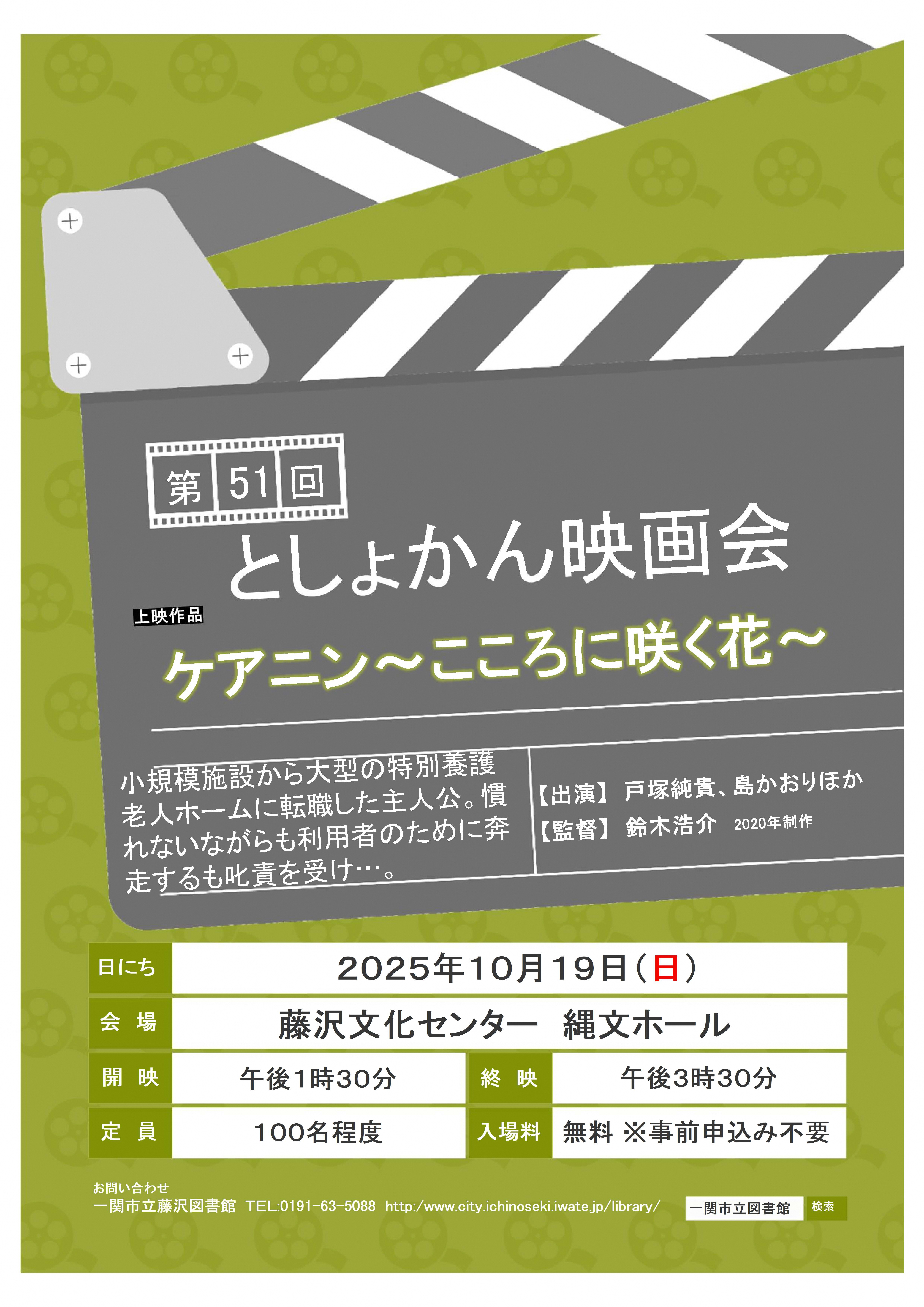| 10月19日 | としょかん映画会 | 藤沢文化センター@縄文ホール 13時30分~15時30分 |