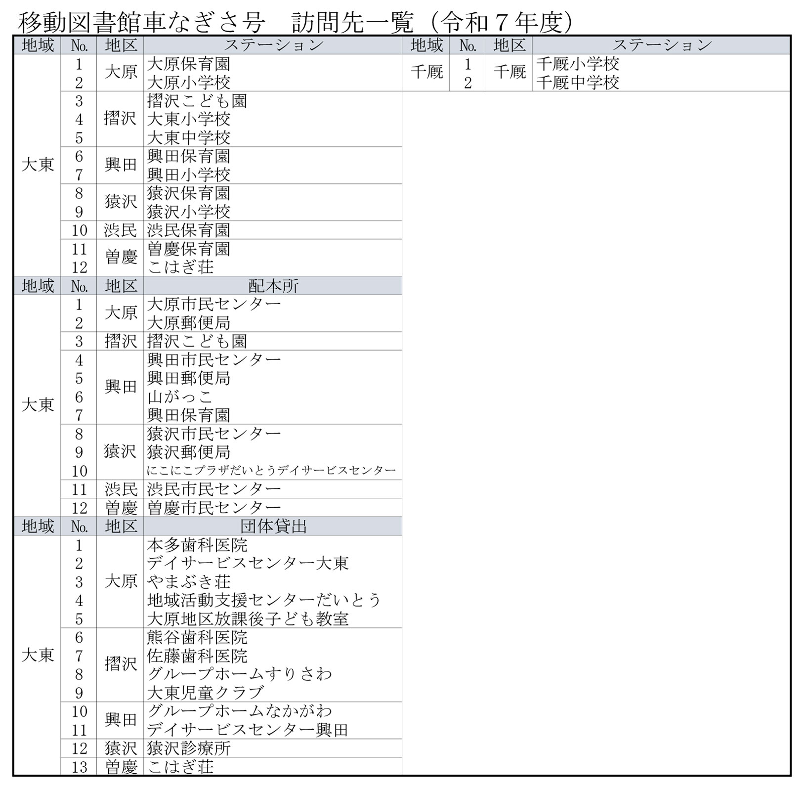 詳細は大東図書館までお問い合わせください。