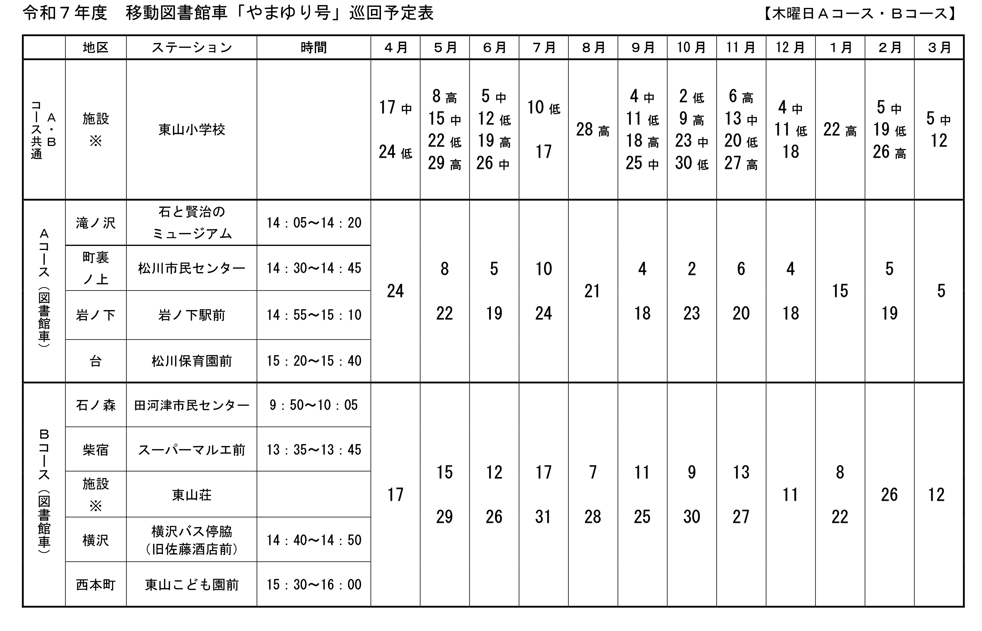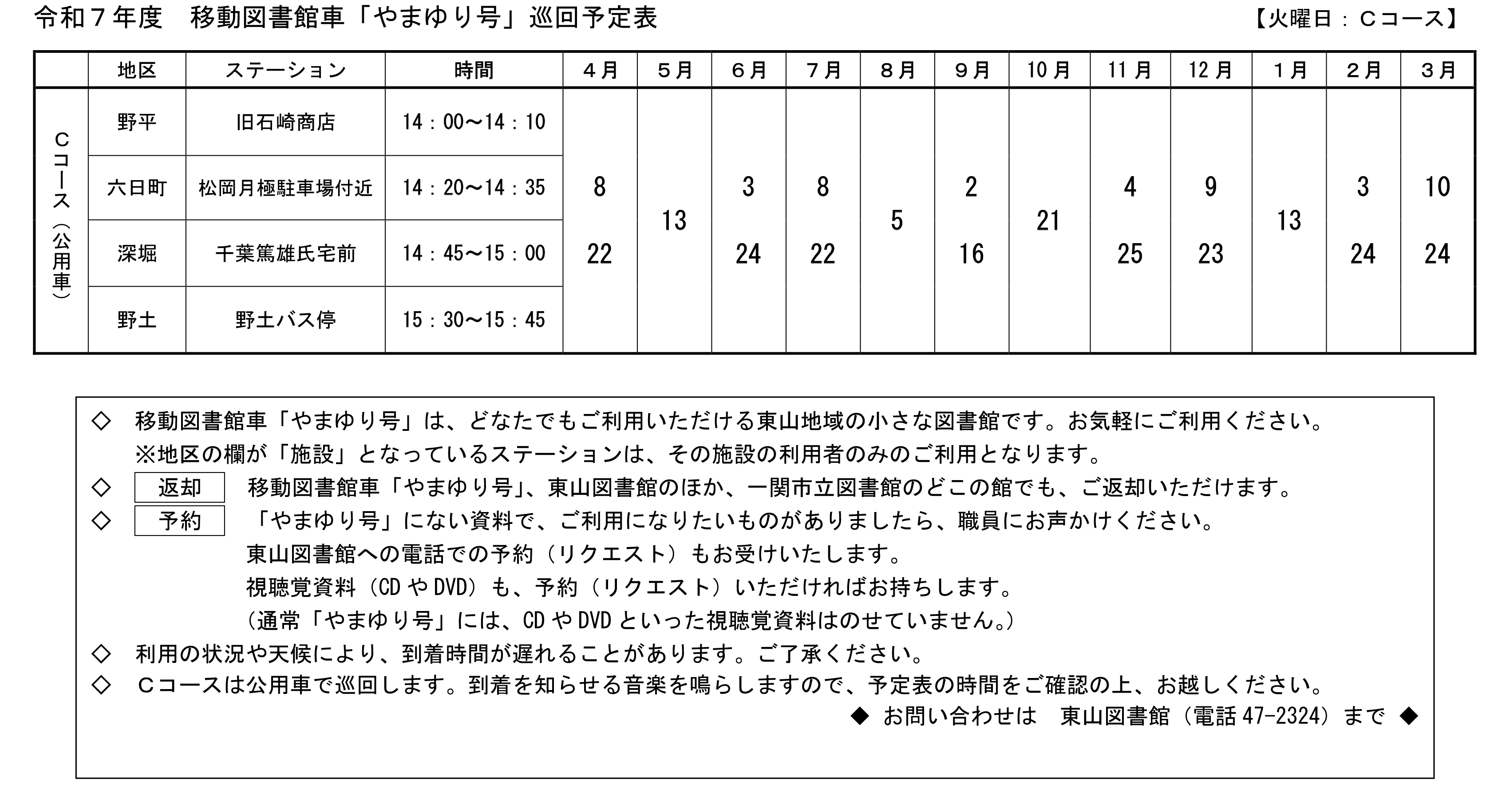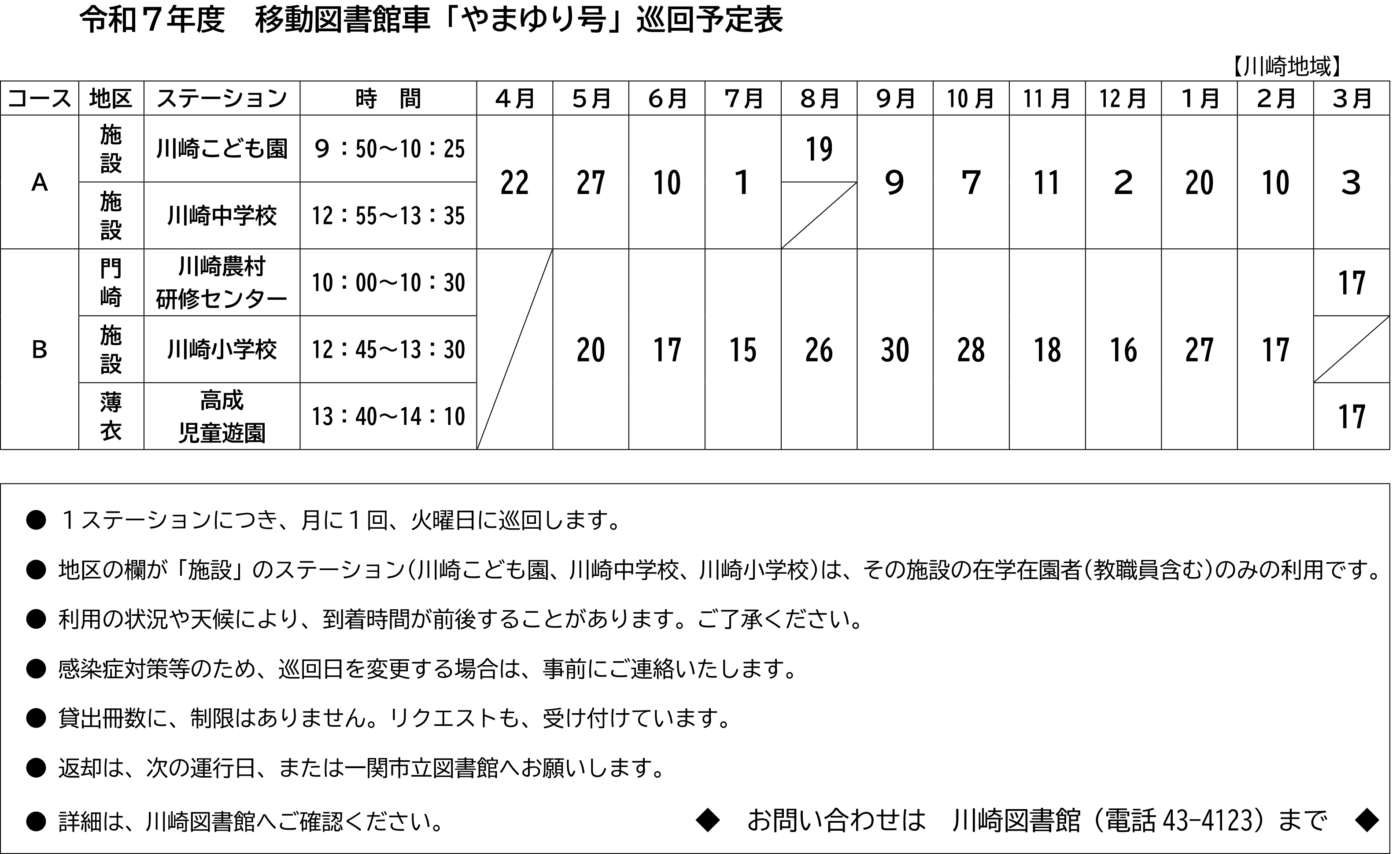 利用の状況や天候により、多少時間が遅れることがあります。また都合により日時を変更する場合もあります。ご了承ください。