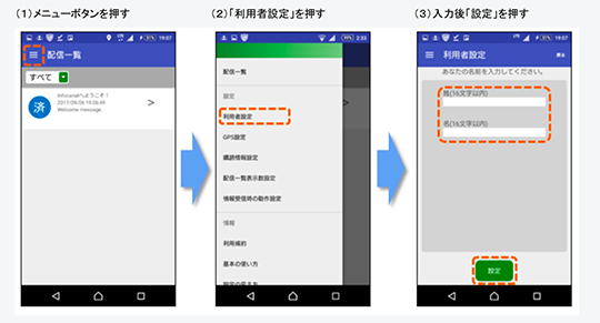 - アプリは、ネットワークの混雑や輻輳に強くメールにくらべ届きやすい性質を持っておりますが、ご利用場所が電波圏外や端末の電源OFFの場合、遅延や配信されない場合がありますので、あらかじめご了承下さい。