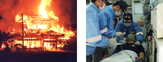 出場隊は迅速に災害現場へ駆けつけ、活動を開始します。
