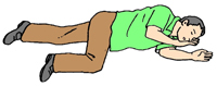 ●反応はないが、普段どおりの呼吸をしている、嘔吐や吐血などがみられる、救助者が1人でその場を離れる場合、傷病者を横向きに寝た姿勢にする。