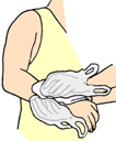 ●出血部位を確認し、ガーゼ、ハンカチやタオルなどを重ねて出血部位に当て、その上から圧迫する。